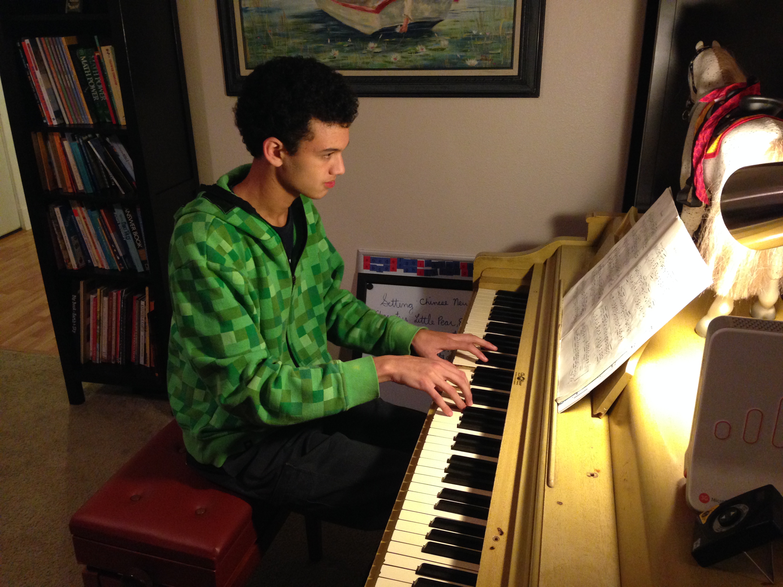 My oldest child, the composer, was my first reluctant piano player. I started him in lessons at 5 years old. The lessons were always very difficult for him, because of his learning challenges, but he played with such emotion and sensitivity, that I knew through diligence and perseverance he could be great. With him, it was helpful to remember that giving up was not an option and by the time he was 14, he finally started to like it.  At 13 I told him he could choose another instrument to play, but he stuck with the piano. He is 17 now, practices at least 2 hours a day and spends the majority of his free time composing. He also plays the keyboard with our church worship band and leads the youth worship band.  At one point he came to me and wanted to quit his classical training in order to just focus on composing. I explained to him that the classical training is what makes composing and playing with the worship band so easy. The classical training is his exercise in the same way that barre work is necessary for every ballerina. No ballerina likes to do those boring barre exercises, but they do it for the glory of being on that stage. Don’t ask me why I would use a ballerina example with a 15 year old boy, but it was all I could think of, and thankfully, it worked.