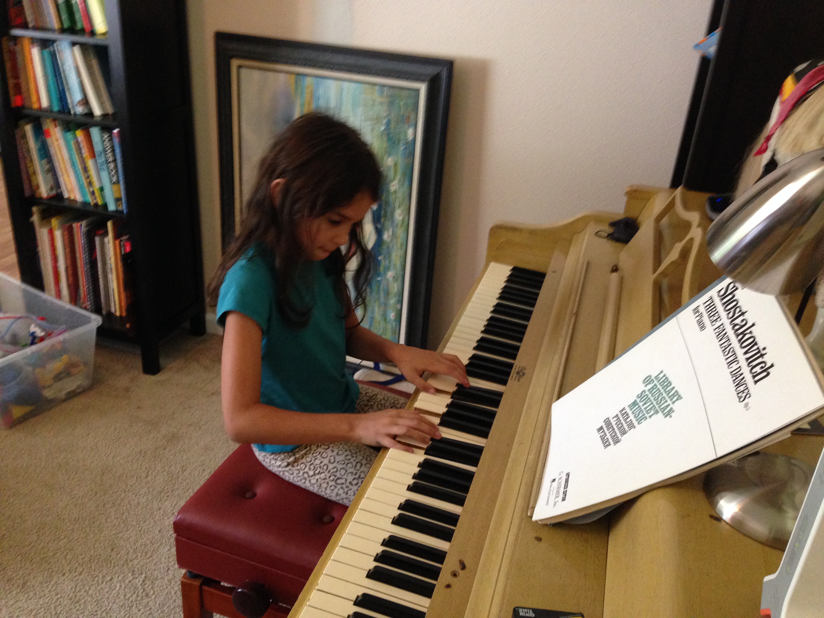 My third child, the ballerina, has been the biggest challenge yet. She is a gifted little musician, but absolutely lacks drive and motivation, and simply doesn’t want to do it. I started her in lessons at 4. Her teacher saw her potential and advanced her quickly.  She was fine and compliant until she was about 6, when it became a crying miserable mess every time she sat at the piano to practice. I decided that the problem was due to the fact that she was advancing too quickly. I discussed this with her teacher, but he just said that she was doing fine. He, however, was not at our house everyday for the practice session meltdowns.